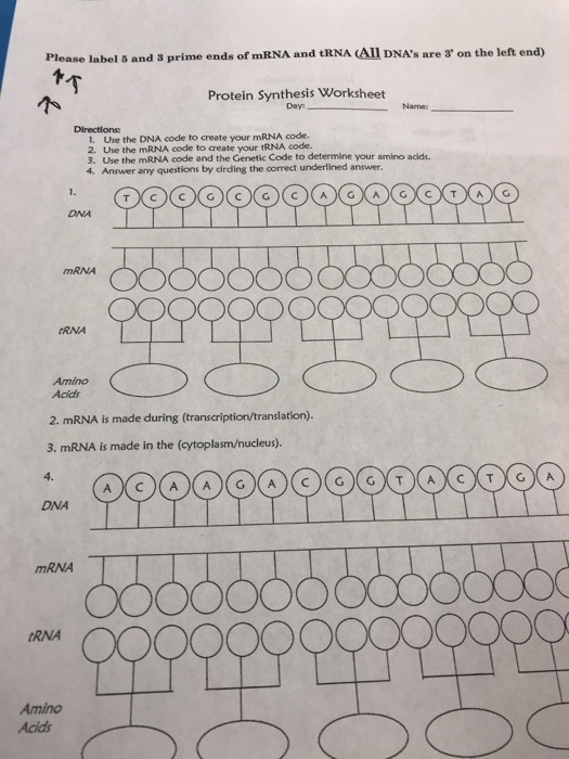 Ribosomes dna rna mrna trna functions protein synthesis in cytoplasm double helix structure this may include polyadenylation, capping, and splicing. Draw an mrna strand 5. If you don't mind share your comment with us. For each 2nda.fill mrna basesdna by transcribing fillin inthe thecorrect complimentary strand the bottom dna 5 the a answer t gto the g questions t aabout g protein c tsynthesis a a t protein synthesis worksheet 1. After transcription, trna is extensively modified to include nonstandard bases such as pseudouridine, inosine, and methylguanosine.